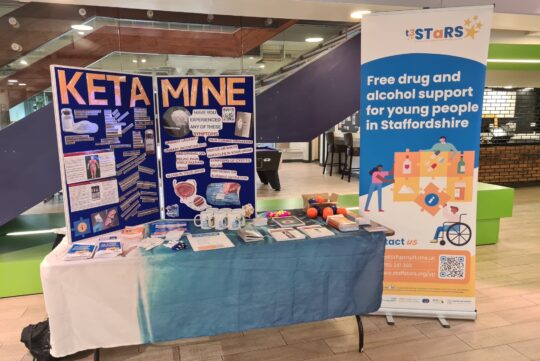 Our T3 keyworkers Lakin and Terry organised a campaign at Keele University as part of the initiative to raise awareness about ketamine use. A number of students and staff attended to discuss the T3 referral pathway as well as other treatment pathways. The risks of ketamine and ketamine bladder were discussed and keyworkers provided harm reduction advice to those in attendance.